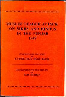 Muslim League Attack on Sikhs and Hindus in the Punjab 1947 is a book by Sikh author Gurbachan Singh Talib. It was first published in 1950 by the Shiromani Gurdwara Prabandhak Committee (SGPC) and has been reprinted several times.