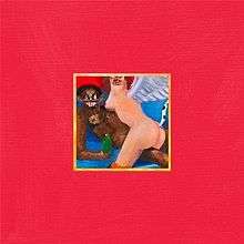 On October 17, 2010, Kanye West revealed through Twitter that My Beautiful Dark Twisted Fantasy had been rejected by certain stores because of the cover art.[105][106] The artwork (a portrait by George Condo) shows West being straddled by an armless winged female (a phoenix).[107] Both characters are depicted nude, and one nipple of the phoenix's breasts and her buttocks are visible. The artist later said that Kanye wanted a cover image that would be banned.[108] The painting is centered with a thin yellow border on a red background. The artwork follows along the apparent theme of the album, as well as West's music film Runaway.[109] This is one of five covers; all of them were included with its purchase.[107] A second cover, with a painting of a ballerina by Condo, was posted on the Amazon.com pre-order page.[110] It was intended to be the original artwork for Runaway, but West used a photograph of a ballerina instead.[110]
