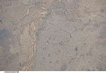 N’Djamena (/əndʒɑːˈmeɪnɑː/;[2][3] French: N'Djaména; Arabic: انجامينا Injāmīnā) is the capital and largest city of Chad. A port on the Chari River, near the confluence with the Logone River, it directly faces the Cameroonian town of Kousséri, to which the city is connected by a bridge. It is also a special statute region, divided into 10 arrondissements. It is a regional market for livestock, salt, dates, and grains. Meat, fish and cotton processing are the chief industries, and the city continues to serve as the center of economic activity in Chad.