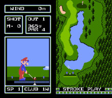 NES Open Tournament Golf, known as Mario Open Golf (マリオオープンゴルフ Mario Ōpun Gorufu) in Japan, is a sports game developed and published by Nintendo for the Nintendo Entertainment System in 1991. NES Open Tournament Golf is the second Nintendo published golf-based video game released for the NES, the first game being Golf. In addition to the Famicom version of Golf, there were two other Nintendo published golf-based video games released in Japan. These games were released in disk format on the Family Computer Disk System in 1987. These two games were Family Computer Golf: Japan Course and Family Computer Golf: U.S. Course.