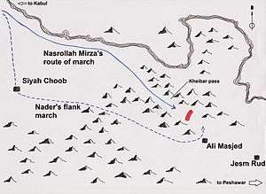 A map of the Kheibar campaign, illustrating Nader's incredible 80 kilometre flank-march