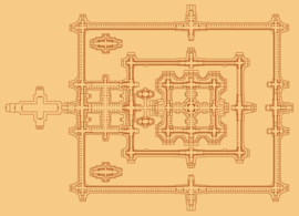 - In plan, the temple is a square with a number of graduated projections in the middle of each side giving a cruciform shape with a number of re-entrant angles on each side.