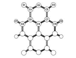 Structure of NTDA. Distances in angstroms: O1 – C4, 1.182; O2 – C4, 1.375; O2 – C5, 1.365; O3 – C5, 1.189; C4 – C6, 1.494; C5 – C7, 1.494.[3]