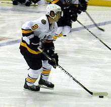 At the completion of his college career Longpre signed an amateur try-out contract with the American Hockey League's (AHL) Worcester Sharks.[22] He played in eight games for Worcester registering one assist.[18] The following season Longpre attended the Vancouver Canucks prospect camp as an unsigned player. He was one of the oldest players in camp.[23] Longpre excelled at the camp and in the corresponding Young Stars Tournament he was among the top point producers for Vancouver, recording three points in three games.[24][25] Longpre's performance earned him an invite to the Canucks main training camp.[26] He failed to make the Canucks roster, but was assigned to their AHL affiliate, the Chicago Wolves, who signed him to a professional try-out contract.[27][28] After his first 11 games with the Wolves he registered five goals and three assists and was signed to a standard player's contract for the remainder of the season.[29] Longpre played in 39 games for the Wolves registering 18 points before being traded to the Springfield Falcons for future consideration.[30] Playing in 20 games for the Falcons Longpre scored 3 goals.[18] During the off-season Longpre re-signed with the Wolves as a free agent.[31]