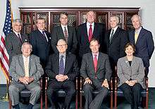 The National Commission on Terrorist Attacks Upon the United States was established on November 27, 2002, by President George W. Bush and the United States Congress, with former Secretary of State Henry Kissinger initially appointed to head the commission.[2] However, Kissinger resigned only weeks after being appointed, because he would have been obliged to disclose the clients of his private consulting business.[3] Former U.S. Senator George Mitchell was originally appointed as the vice-chairman, but he stepped down on December 10, 2002, not wanting to sever ties to his law firm.[4] On December 15, 2002, Bush appointed former New Jersey governor Tom Kean to head the commission.[5]