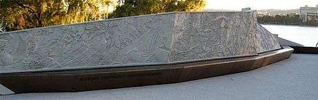 The National Emergency Services Memorial is a memorial located on the northern shore of Lake Burley Griffin at the southern end of Anzac Parade in Canberra, the national capital of Australia. It was designed by Aspect Melbourne Pty Ltd, the frieze was created by artist Charles Anderson and the sculpture was created by Darryl Cowie.