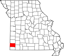3 miles (4.8 km) south of Monument 36°59′07″N 94°21′18″W / 36.985278°N 94.355°W |