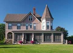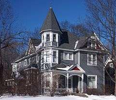 Monticello | 1889 Queen Anne/Shingle Style house with a board and batten barn.[20] |