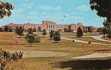 This 1960s-era postcard image shows the NOL Administration Building and golf course as seen from New Hampshire Ave. After renovation for use by the FDA it still looks much the same, with "Naval Ordnance Laboratory" still carved in stone above the main entrance.
