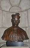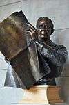 On June 6, 1961, the Nebraska State Legislature also accepted a bust of John G. Neihardt and resolved to permanently place it "in one of the niches in the corridors of the State Capitol."[5] The state dedicated the Neihardt bust on December 7, 1961, and placed it in a large niche above the landing of the northeast stairwell.[6] On April 3, 1962, the state moved the Neihardt bust to the southwest niche of the Great Hall (across from the Norris bust) after protests pronounced that the bust's previous location was improper.[7] On March 21, 1974, the Nebraska Hall of Fame Commission elected Neihardt to the hall of fame, and the commission grandfathered his bust into its statuary collection at the capitol.[8]