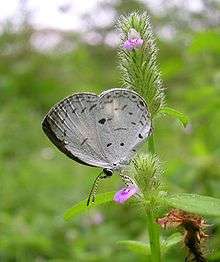 Neopithecops zalmora, the Quaker, is a small butterfly found in South Asia and Southeast Asia that belongs to the lycaenids or blues family.