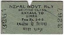 - ↑ "Railroads". A Country Study: Nepal. The Library of Congress. 22 March 2011. Retrieved 26 July 2013.