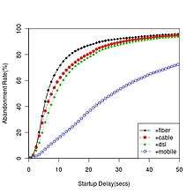 On May 15, 2014, in the face of continuing intense focus and criticism, the FCC stated it would consider two options regarding Internet services: first, permit fast and slow broadband lanes, thereby compromising net neutrality; and second, reclassify broadband as a telecommunication service, thereby preserving net neutrality.[10][68] The same day, the FCC opened a public comment period on how FCC rulemaking could best protect and promote an open Internet, garnering over one million responses, the most the FCC had ever received for rulemaking.[69] The FCC proposal for a tiered Internet received heavy criticism. Opponents argued that a user accessing content over the "fast lane" on the Internet would find the "slow lane" intolerable in comparison, greatly disadvantaging any content provider who is unable to pay for "fast lane" access. They argued that a tiered Internet would suppress new Internet innovations by increasing the barrier to entry. Video providers Netflix[70] and Vimeo[71] in their comments filed with the FCC used the research of S.S. Krishnan and Ramesh Sitaraman that provided quantitative evidence of the impact of Internet speed on online video users.[57] Their research studied the patience level of millions of Internet video users who waited for a slow-loading video to start playing. Users with faster Internet connectivity, such as fiber-to-the-home, demonstrated less patience and abandoned their videos sooner than similar users with slower Internet connectivity.[72][73][74]