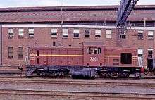 Locomotive 7201 was a diesel-hydraulic locomotive, with B-B wheel arrangement. Built in the New South Wales Government Railways Water Supply Workshops at Chullora, it performed its first light engine trial on 27 August 1965.[1] It was built on the lengthened underframe of an unused 58 class locomotive tender, but using the bogies from a Standard Goods locomotive[2] turret tender. The cab was similar to that of an X200 class and the livery was similar to a 48 class.