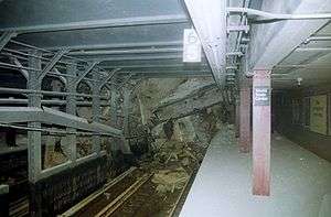 The Cortlandt Street station partially collapsed as a result of the collapse of the World Trade Center.