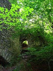 Niesytno Castle (Polish: Zamek Niesytno) was a castle in the south-west of Poland, near the village of Płonina (German name: Nimmersath), situated west of Bolków. When the castle had turned into ruins, the Płonina Palace was built at the same site, though the place is still often referred to as Niesytno Castle. It has decayed over the years, and only its ruins have remained. It is in private hands and closed for public, but is along the touristic Piastowskich Castle Route (Szlak Zamków Piastowskich).