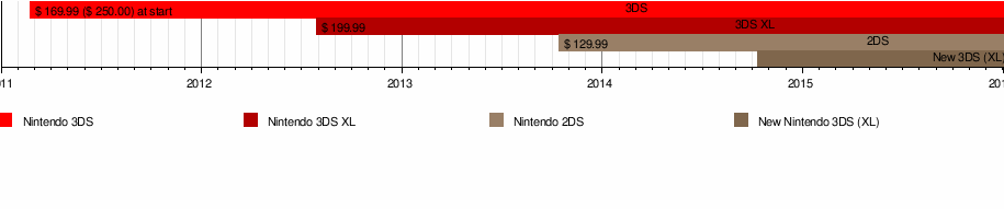 The Nintendo 3DS was first released in Japan on February 26, 2011, and worldwide beginning in March 2011.[7][8] Less than six months later on July 28, 2011, Nintendo announced a significant price reduction from US$249 to US$169 amid disappointing launch sales.[9] The company offered ten free Nintendo Entertainment System games and ten free Game Boy Advance games from the Nintendo eShop to consumers who bought the system at the original launch price.[10] This strategy was considered a major success, and the console has gone on to become one of Nintendo's most successfully sold handheld consoles in the first two years of its release. As of March 31, 2016, all Nintendo 3DS models and 2DS models combined have sold 58.85 million units.[11]