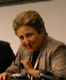 Shirin Ebadi (Persian: شيرين عبادى Širin Ebādi; born 21 June 1947) is an Iranian lawyer, a former judge and human rights activist and founder of Defenders of Human Rights Center in Iran. On 10 October 2003, Ebadi was awarded the Nobel Peace Prize for her significant and pioneering efforts for democracy and human rights, especially women's, children's, and refugee rights. She was the first ever Iranian to receive the prize, and thousands greeted her at the airport when she returned from Paris after receiving the news that she had won the prize.[3]