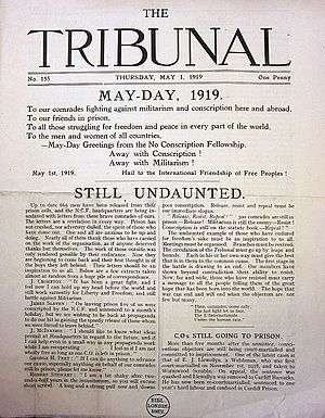 - ↑ "No Conscription Fellowship". www.wcml.org.uk. Working Class Movement Library. Retrieved 3 February 2016.