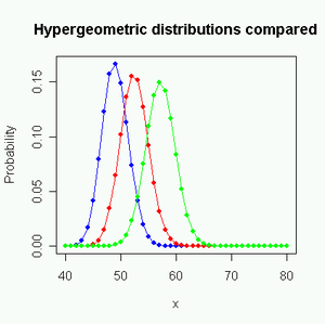 In statistics, the hypergeometric distribution is the discrete probability distribution generated by picking colored balls at random from an urn without replacement.