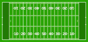 A football field is 330 feet long by 160 feet wide. At each end are goal posts set 18 feet 6 inches apart, with a crossbar 10 feet above the ground. The field is marked off in chalk lines similar to a tennis court, these lines being 5 yards apart. The centre of the field where the play starts is 55 yards from either end. It is usually customary to run lines parallel to the sides of the field, also 5 yards apart, but as a field is but 160 feet wide the first and last of these lines are but 5 feet from the side lines instead of 5 yards. The lines on a football field make a checkerboard effect and have given to the field the name of "gridiron."
