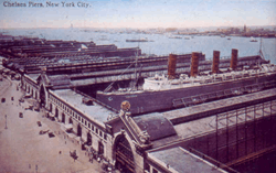 - The Chelsea Piers entertainment complex is located at piers 59 through 62, from West 17th to West 22nd Street. In the early 1900s, Chelsea Piers was used by the Cunard and White Star lines, and was the intended destination of the Titanic as well as the final berth of the Lusitania.