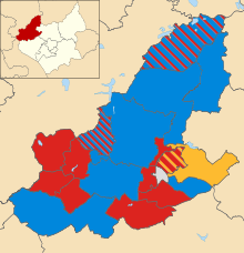 | Party | Seats | Gains | Losses | Net gain/loss | Seats % | Votes % | Votes | +/− | ||