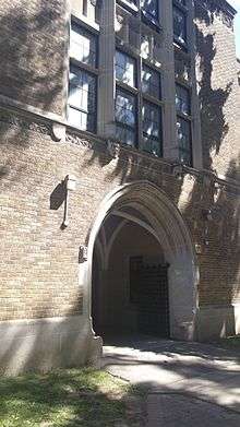 Further evidence of the Gothic Collegiate style can be found in the vaulted ceilings of the hallways, and the arched doorways and windows featured throughout the building. As stated on a plaque inside the main entrance, during the 60s a major addition was built which significantly altered the rear of the school. These renovations changed little about the original parts of the building. Although once grand, over the decades, the facility has fallen into considerable disrepair and is in need of extensive renovation.[8]