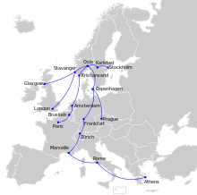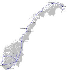 - ↑ Det Norske Luftfartselskap. "Flyruter". Airline Timetable Images. Retrieved 1 March 2010.
