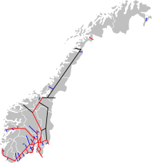 Map of the railway lines in Norway.