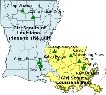 Girl Scouts Louisiana East serves some 16,000 girls in 23 parishes. It was formed by the merger of Girl Scout Council of Southeast Louisiana and Girl Scouts-Audubon Council in April 2008.