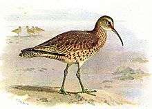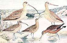 The species was described by Johann Reinhold Forster in 1772.[3] The generic name has three possible etymologies. One is that it comes from the Greek "noumenios". "Noumenios" means "of the new moon", the thin beak of this curlew being compared to a thin crescent moon.[4] A second possibility is that the genus name is derived from the word numen, meaning "nod", and referring to this species head being bent forward and down. The final possibility is that Numenius is a Latinized form of the Greek noumenios, which was the word Diogenes Laertius used to refer to a species of curlew. The specific name "borealis" is Latin for "northern".[5]