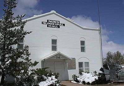 A post office called Nunn has been in operation since 1905.[5] The town was named after Tom Nunn, who was credited with preventing a nearby train wreck.[6]