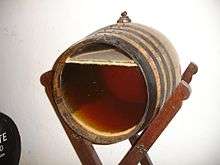 Throughout history other wood types, including chestnut, pine, redwood, and acacia, have been used in crafting winemaking vessels, particularly large fermentation vats. However none of these wood types possess the compatibility with wine that oak has demonstrated in combining its water tight, yet slightly porous, storage capabilities with the unique flavor and texture characteristic that it can impart to the wine that it is in contact with.[23] Chestnut is very high in tannins and is too porous as a storage barrel and must be coated with paraffin to prevent excessive wine loss through evaporation. Redwood is too rigid to bend into the smaller barrel shapes and imparts an unpleasant flavor. Acacia imparts a yellow tint to the wine. Other hardwoods like apple and cherry wood have an off putting smell.[24] Austrian winemakers have a history of using acacia barrels. Historically, chestnut was used by Beaujolais, Italian and Portuguese wine makers.[25] Some Rhône winemakers still use paraffin coated chestnut barrels but the coating minimizes any effect from the wood making its function similar to a neutral concrete vessel. In Chile there are traditions for using barrels made of rauli wood but it is beginning to fall out of favor due to the musky scent it imparts on wine.[26]