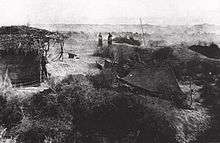 Shortly after the withdrawal from Amman a force of seven Ottoman aircraft bombed the Jordan Valley garrison and on 11 April 1918 a series of Ottoman attacks were made on Ghoraniyeh bridgehead, on El Mussallabeh hill and on the Auja position.[34][35][36] This attack is referred to by the British as the 'Turkish Attack on the Jordan Bridgeheads'.[37]
