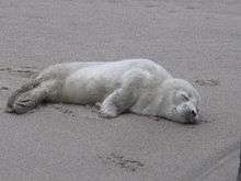The marine ecology of the Oregon Coast is some of the most diverse in the world. Several species of marine mammals make their home on the Oregon Coast, including several species of seal, including the Steller's sea lion and harbor seal, as well as the less common northern elephant seal and California sea lion.[13] The Sea Lion Caves near Florence, and the bay front in Newport are the best places to see Steller's sea lions and harbor seals, though they can be observed in many other places. Seal pups can sometimes be seen on sandy beaches resting. Signs are often posted on beaches warning of this, as the law prohibits disturbing them. Formerly, populations of sea otter could be found on the coast. However, fur hunters have wiped out the Oregon populations. Prior to the sighting in February, 2009 in Depoe Bay, no sea otters had been sighted in over 103 years.[14] Occasionally, large Humboldt Squid wash up onto the beaches after following warm currents which dissipate leaving the squid to die of hypothermia.[15]