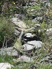 The ocellated lizard was part of the traditional cuisine of Extremadura, Spain.[3] In this region, the lizard was usually prepared in guisado, made by frying slices of lizard in olive oil, after which they were stewed over a slow fire.[4][5][6]