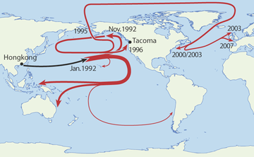 - ↑ Marsha Walton (28 May 2003). "How sneakers, toys and hockey gear help ocean science". CNN. Retrieved 2008-04-08.