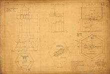 - ↑ Rowlett says square though the plans to the left clearly show a hexagonal form.