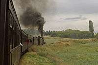 The Trochita railway is 402 km in length and runs through the foothills of the Andes between Esquel and El Maitén in Chubut Province and Ingeniero Jacobacci in Río Negro Province,[1] originally it was part of Ferrocarriles Patagónicos, a network of railways in southern Argentina. Nowadays, with its original character largely unchanged, it operates as a heritage railway and was made internationally famous by the 1978 Paul Theroux book The Old Patagonian Express, which described it as the railway almost at the end of the world.[2] Theroux had sought to ride trains as far as possible into southern Argentina but did not include in his adventures the several railroads which were further south than Esquel, presumably because they were not considered operational or with sufficient connection to larger lines.