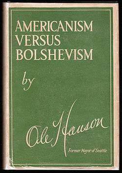 - ↑ Ole Hanson, Americanism versus Bolshevism. New York: Doubleday, Page & Co., 1920; pp. vii-viii.