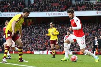 - ↑ "Arsenal's Olivier Giroud recovers from midweek nightmare to down Everton". The Guardian. Retrieved 2 March 2015.