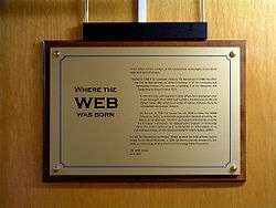 Plate placed next to the office where Tim Berners-Lee and Robert Cailliau began the World Wide Web