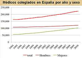 - ↑ Profesionales sanitarios colegiados por tipo de profesional, años y sexo. Instituto Nacional de Estadística. 20/06/2011