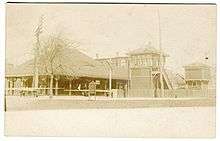 The narrow gauge Boston, Revere Beach and Lynn Railroad (BRB&L) opened from East Boston to Lynn on July 29, 1875.[4] The BRB&L opened with Orient station, located north of the intersection of Bennington and Saratoga Street.[4] It was soon replaced with Winthrop station located closer to Saratoga Street.[5][6]