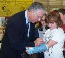 US Congressman Donald Manzullo signs a short arm cast. Signing casts is a common practice in the United States.