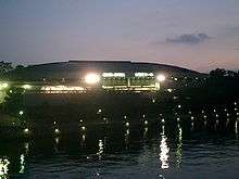 Osaka-jō Hall (大阪城ホール Ōsaka-jō Hōru) is a multi-purpose arena located in the Kyōbashi area of Osaka, Japan. The hall opened in 1983 and can seat up to 16,000 people. Built on a site area of 36,351 square meters, part of its form uses stone walls, modeled after those of the Castle and it won the Osaka Urban Scenery Architects Prize Special Award in 1984.
