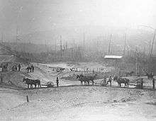 In 1867 John Rudolphus Booth purchased a 250 square mile tract of Egan's lands on the western side of today's Algonquin Park. Booth continued to add to his collection of holdings and by the 1890s held title to over 7,000 square miles of lands. Mill work was centralized at Booth's operations at Chaudiere Falls in downtown Ottawa, which evolved in the largest sawmill operation in the world.[3] Logging was initially carried out in areas with easy access to waterways leading to the Ottawa River, but over time these started to be used up.