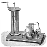 An Oudin coil, also called an Oudin oscillator or Oudin resonator, is a resonant transformer circuit that generates very high voltage, high frequency alternating current (AC) electricity at low current levels,[1][2][3] used in the obsolete medical field of electrotherapy around the turn of the 20th century.[4] It is very similar to a Tesla coil, with the difference being that the Oudin coil was connected as an autotransformer.[2][5] It was invented in 1893 by French physician Paul Marie Oudin[6] as a modification of physician Jacques Arsene d'Arsonval's electrotherapy equipment[7][8] and used in quack medicine until perhaps 1930. The high voltage output terminal of the coil was connected to an insulated handheld electrode which produced luminous brush discharges, which were applied to the patient's body to treat various medical conditions in electrotherapy.[4]