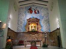 A replica of the image was made to commemorate the quadricentennial of the icon's finding. From May 1970 to 1971, the replica visited almost all parishes, chapels, hospitals, schools, and other institutions in the Archdiocese of Manila. It is this replica that is brought out for processions and public veneration during its feast day, with the original remaining ensconced in its glass-covered alcove above the main altar.[6] The statue was removed from the shrine and placed in the room of Pope John Paul II for the duration of his 1995 Apostolic visit.